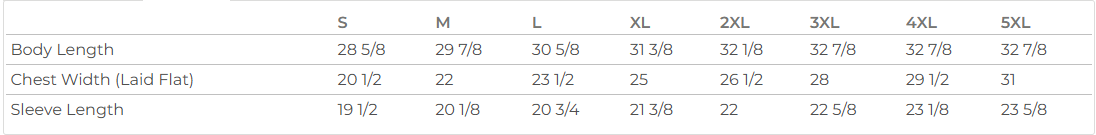Sizes: S, M, L, XL, 2XL, 3XL